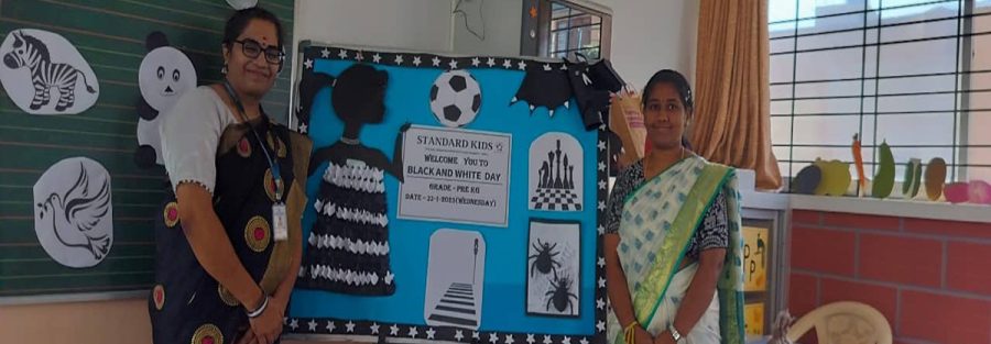 The Pre-KG students of Standard Kids joyfully celebrated Black & White Day: Learning Through Shades! on 22nd January 2025. This exciting event was thoughtfully designed to introduce young learners to the concept of colours, helping them recognize and differentiate between black and white in an engaging way. The atmosphere was filled with enthusiasm as children arrived in adorable black-and-white outfits, ready to explore these two contrasting shades.