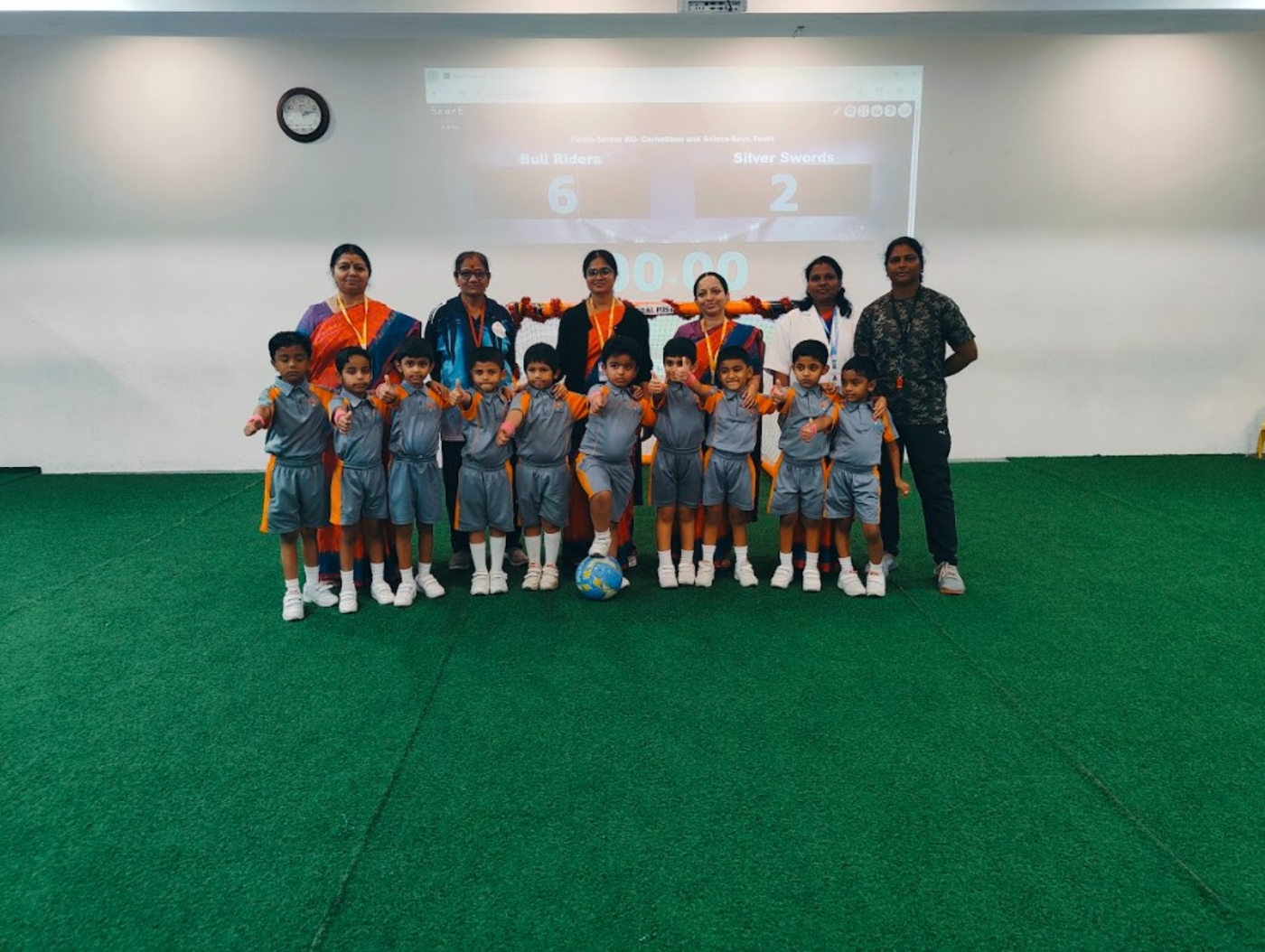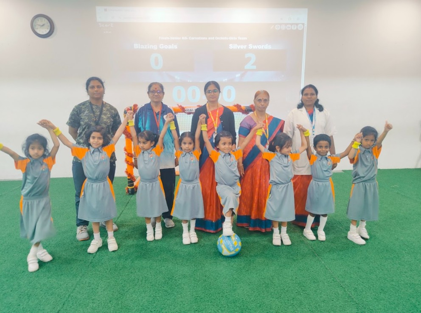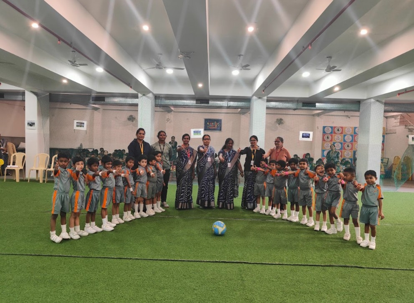 The young champions displayed remarkable energy, teamwork, and coordination as they ran across the field, kicking the ball and aiming for the goal. Through the matches, children learned the importance of cooperation, sharing, and playing together as a team. Their cheerful smiles and determined efforts reflected their excitement and growing sportsmanship.
