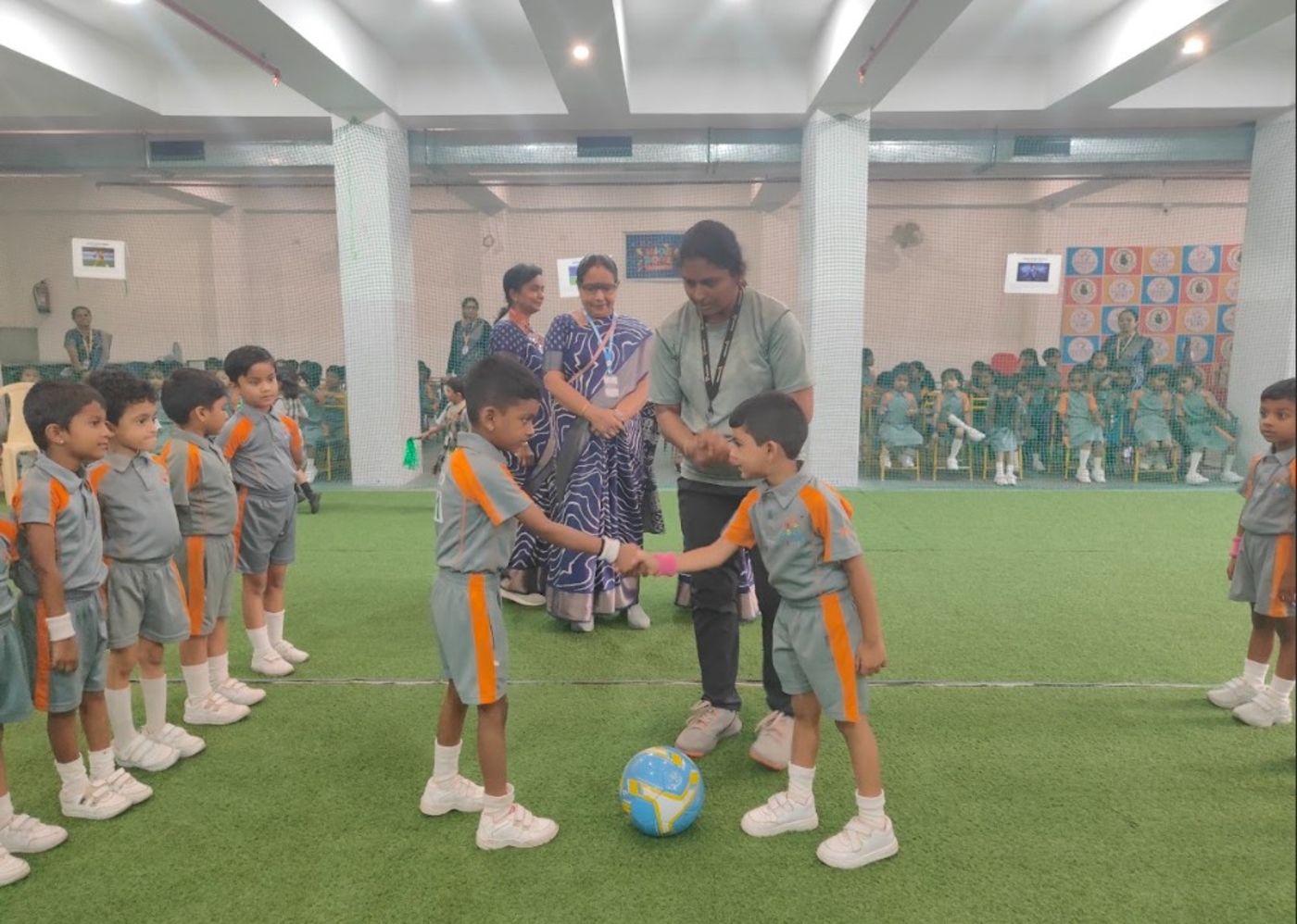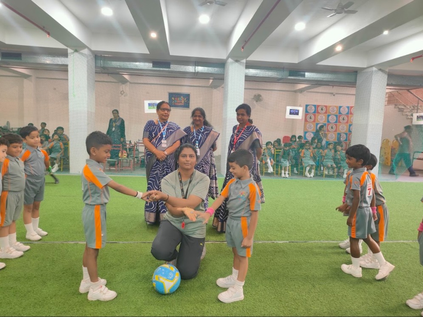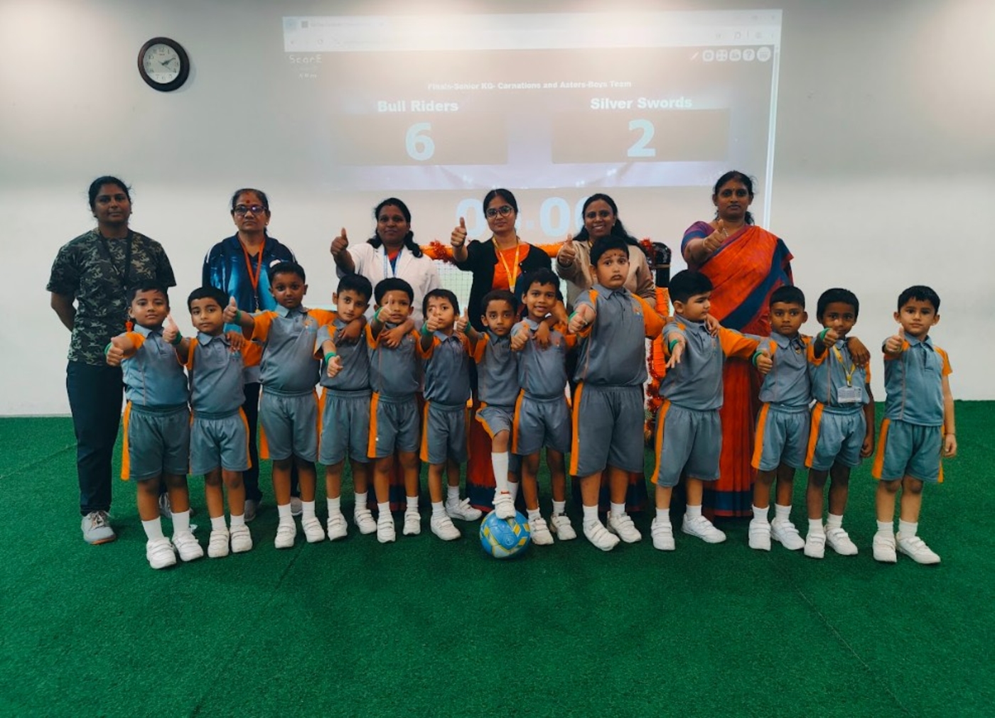 The young champions displayed remarkable energy, teamwork, and coordination as they ran across the field, kicking the ball and aiming for the goal. Through the matches, children learned the importance of cooperation, sharing, and playing together as a team. Their cheerful smiles and determined efforts reflected their excitement and growing sportsmanship.