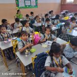 To mark Van Mahotsav, which is India’s annual tree-planting festival, the children participated in activities designed to emphasize the importance of trees in our everyday lives. Teachers guided them through simple yet meaningful discussions on how plants provide oxygen, food, shade, and beauty, helping even the youngest students grasp the idea that “trees are our friends.”