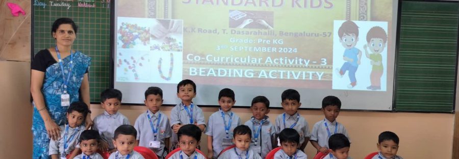 On 3rd September 2024, our Pre-KG students delved into a delightful co-curricular activity—crafting hand bands with beads. This engaging project was more than just a fun pastime; it was an enriching experience that combined creativity with skill development. The young learners eagerly participated, their faces lighting up as they selected colorful beads to bring their unique designs to life.