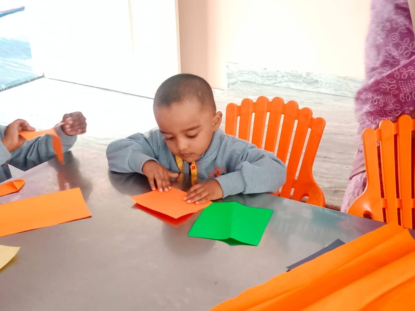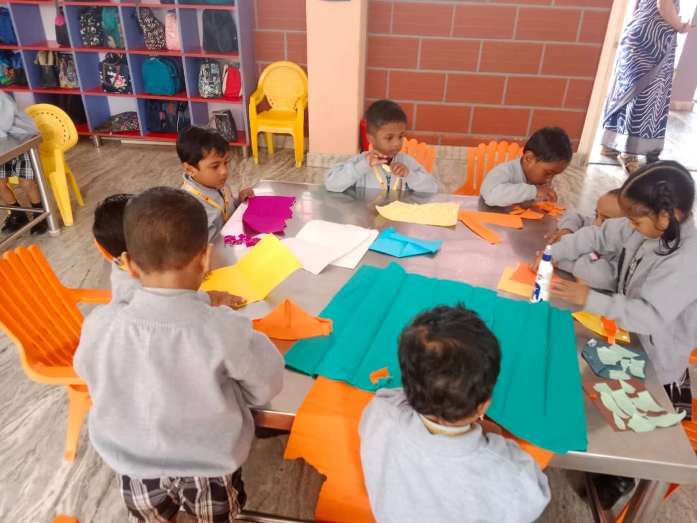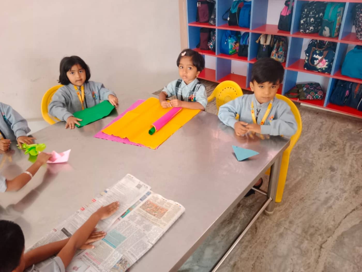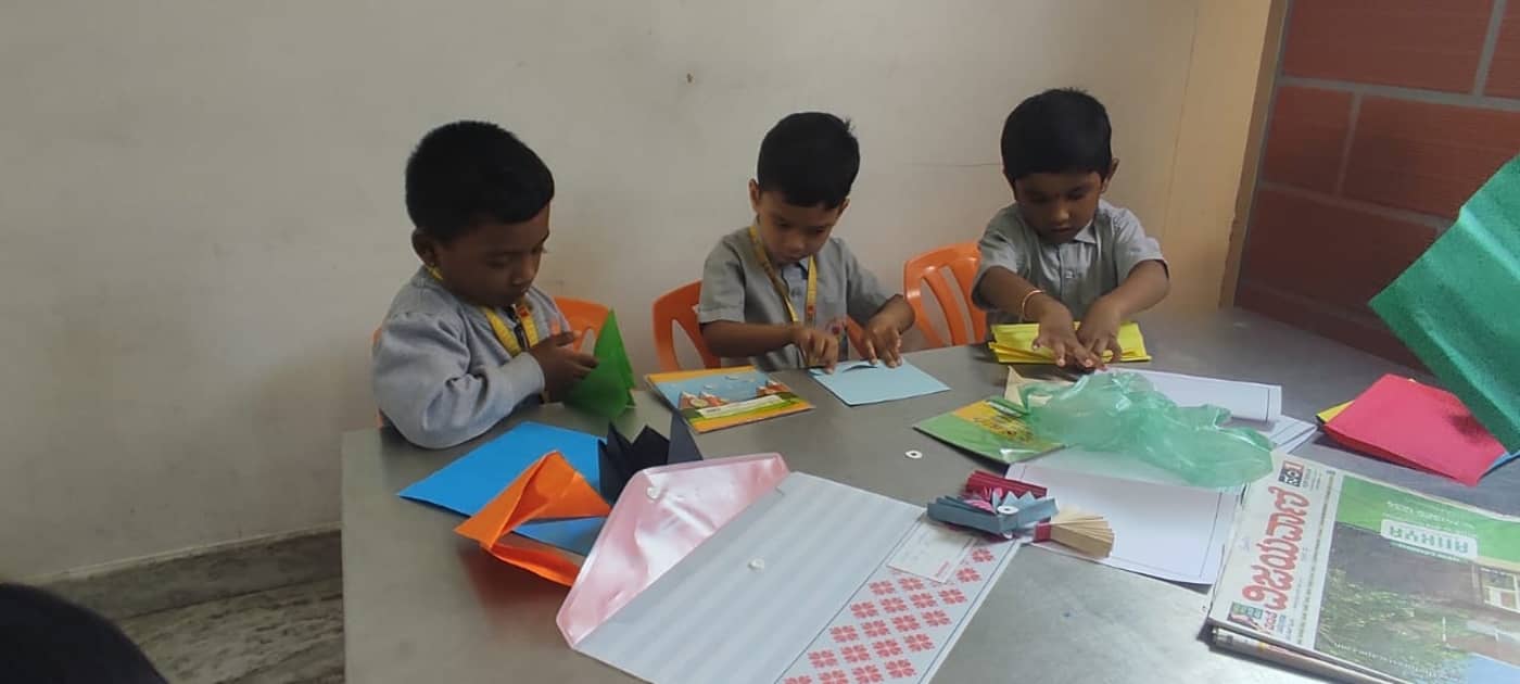 During the activity, the children showcased their imagination by creating a variety of charming paper crafts such as boats, birds, animal faces, and many other creative designs. Each child took pride in their artwork, carefully following instructions while also adding their own unique ideas. The process of folding, cutting, and pasting helped the young learners improve their hand–eye coordination and fine motor skills, which are essential at this early stage of development. The classroom buzzed with excitement as students shared their creations with friends and teachers.